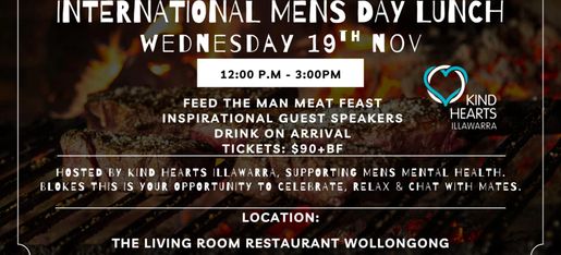 Kind Hearts Illawarra is teaming up with The Living Room restaurant to put on a “Feed the Man Meat Feast” this International Men’s Day.